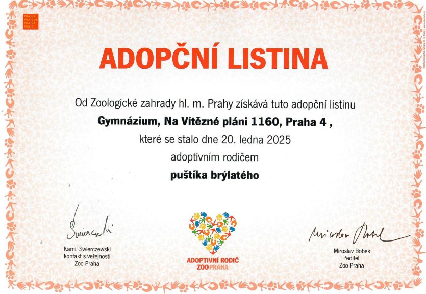 Ve školním roce 2024/25 jsme vybrali a poukázali ZOO Praha 10 100 Kč.