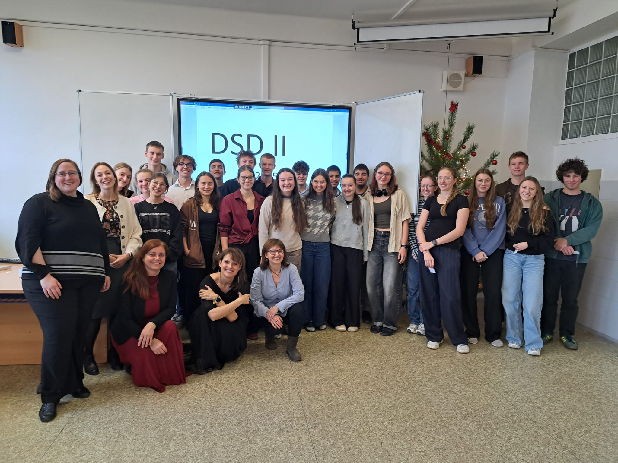 Zkoušelo se celý týden od 8.12. do 12.12. Naší předsedkyní komise byla za německou stranu paní Anna Schmitz z gymnázia Na Pražačce, zkoušejícími byly profesorky Mgr. Irena Koller a Mgr. Marta Urbanová. K ústním zkouškám přistoupilo 25 kandidátů. Zkoušky byly náročné - tak jako každý rok, ale odlehčovala je všudypřítomná předvánoční atmosféra. Všem zúčastněným a úspěšným studentům srdečně gratulujeme! Nyní ještě zbývá vyčkat na výsledky písemné části zkoušky :)■