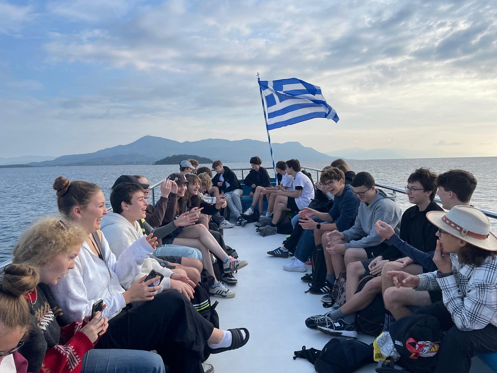 Trajekt – místo, kterého se většina obává kvůli mořské nemoci nebo strachu z moře. Pro naši generaci byl ale mnohem větším strašákem dvoudenní pobyt bez mobilního připojení. Po ubytování ve velmi stísněných, zato pohodlných kajutách jsme se jako třída sešli na horním heliportu, odkud byl nádherný výhled na moře. Stačil jeden pohled a nám došlo, že být bez internetu není žádný trest, ale naopak – příležitost užívat si přítomný okamžik. Trávili jsme čas odpočíváním, povídáním, hraním deskových her – a někteří dokonce buzením kapitána lodi. Vrcholem naší plavby po Jaderském moři byl nedělní večer, kdy jsme měli mít taneční lekci. Bohužel jsme byli v Řecku. Naštěstí naše spolužáky napadl naprosto geniální nápad – udělat si vlastní taneční přímo na trajektu. Tak jsme se večer, pod širým nebem a obklopeni mořem, sešli a společně si zatančili country tance pod vedením našeho překvapivě velmi tanečně nadaného pana profesora.